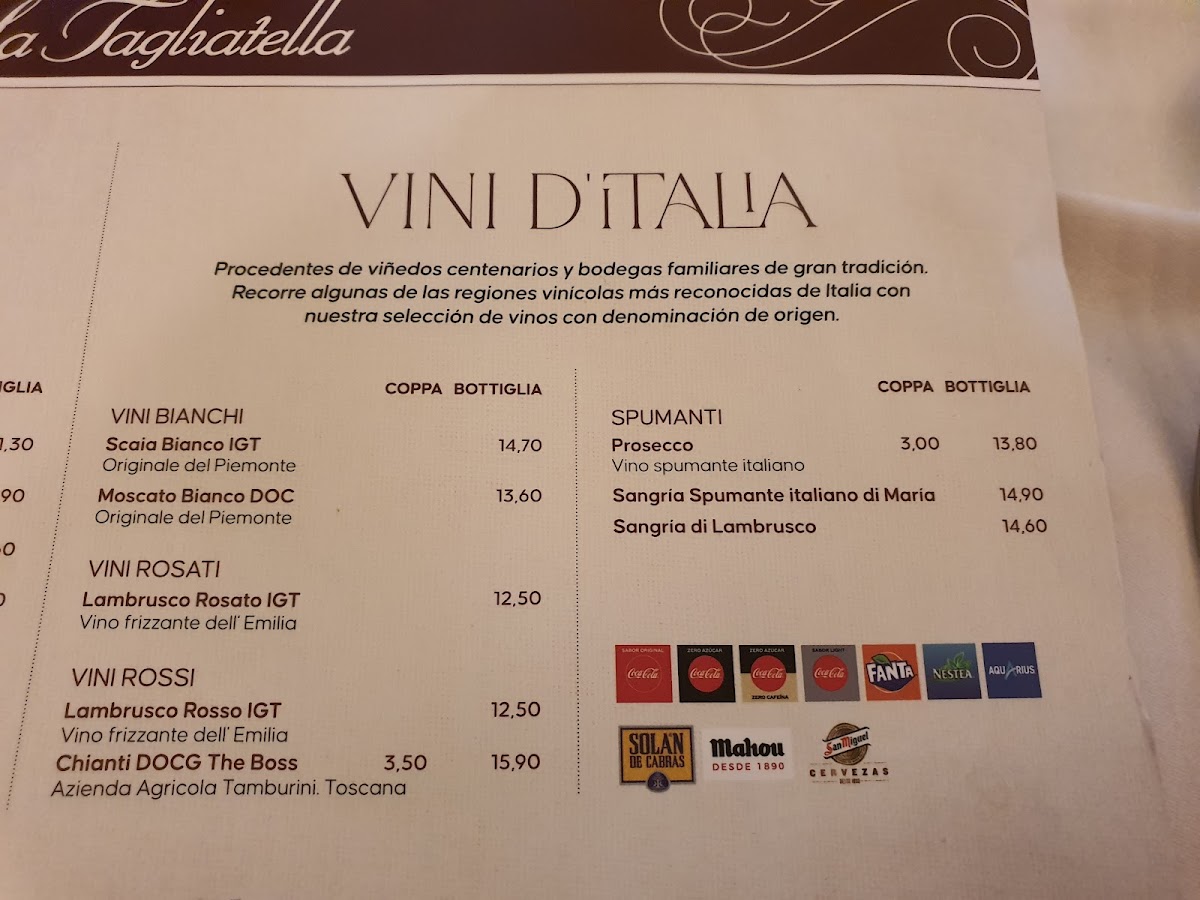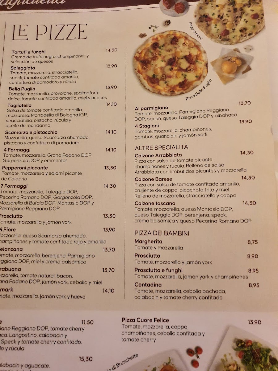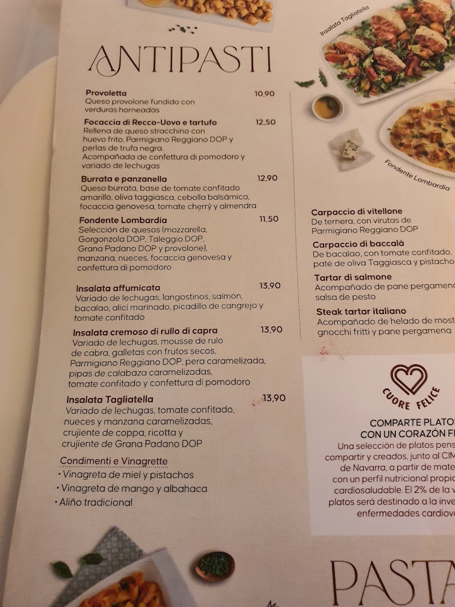 Restaurant La Tagliatella Som Multiespai, Barcelona Menu